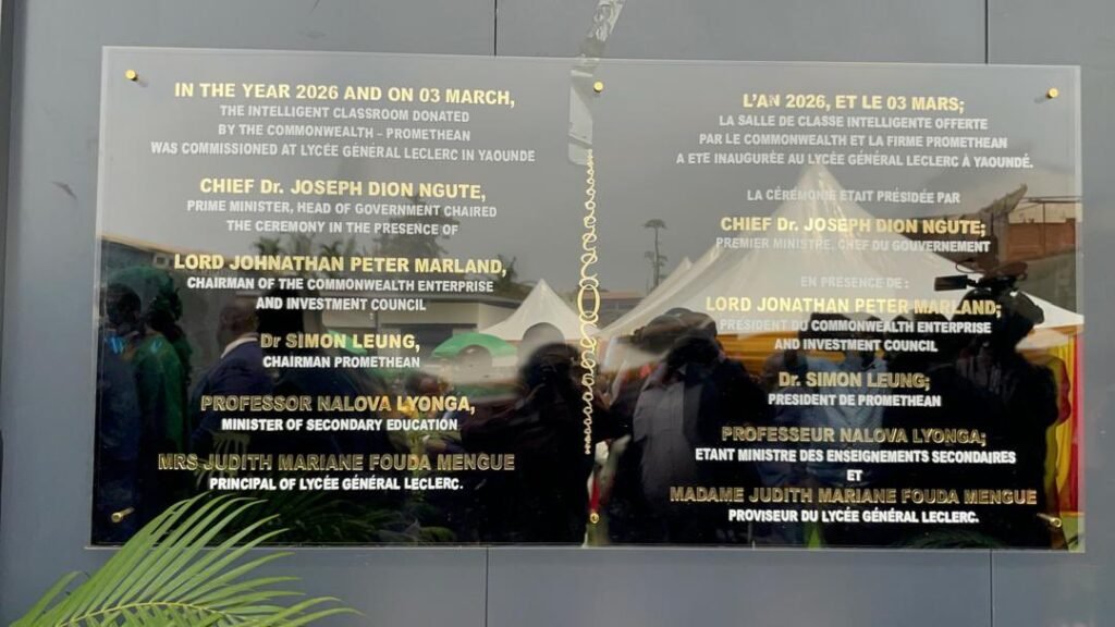L’école camerounaise vient de franchir un cap. Le 3 mars 2026, dans l’enceinte du Lycée général Leclerc, le Premier Ministre Joseph Dion Ngute a inauguré une salle de classe intelligente de dernière génération, en présence de huit membres du gouvernement, du Président du Commonwealth Enterprise and Investment Council, Jonathan Peter Marland, et du Président de l’entreprise technologique Promethean, le Dr Simon Leung.